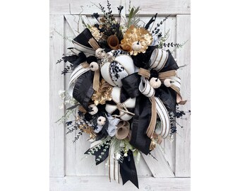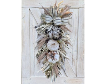 Neutral Fall Swag: Boho Chic Pumpkin Front Door Decor (42x22 inches)